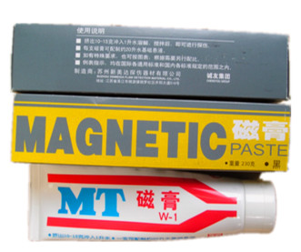 磁膏的使用:加入到自來水中攪拌分散,成為水懸浮液用以磁粉探傷。每升水用量:擠出長度130-300mm(重量約12-31g);濃度測定沉淀量1.3-3.5ml/100ml